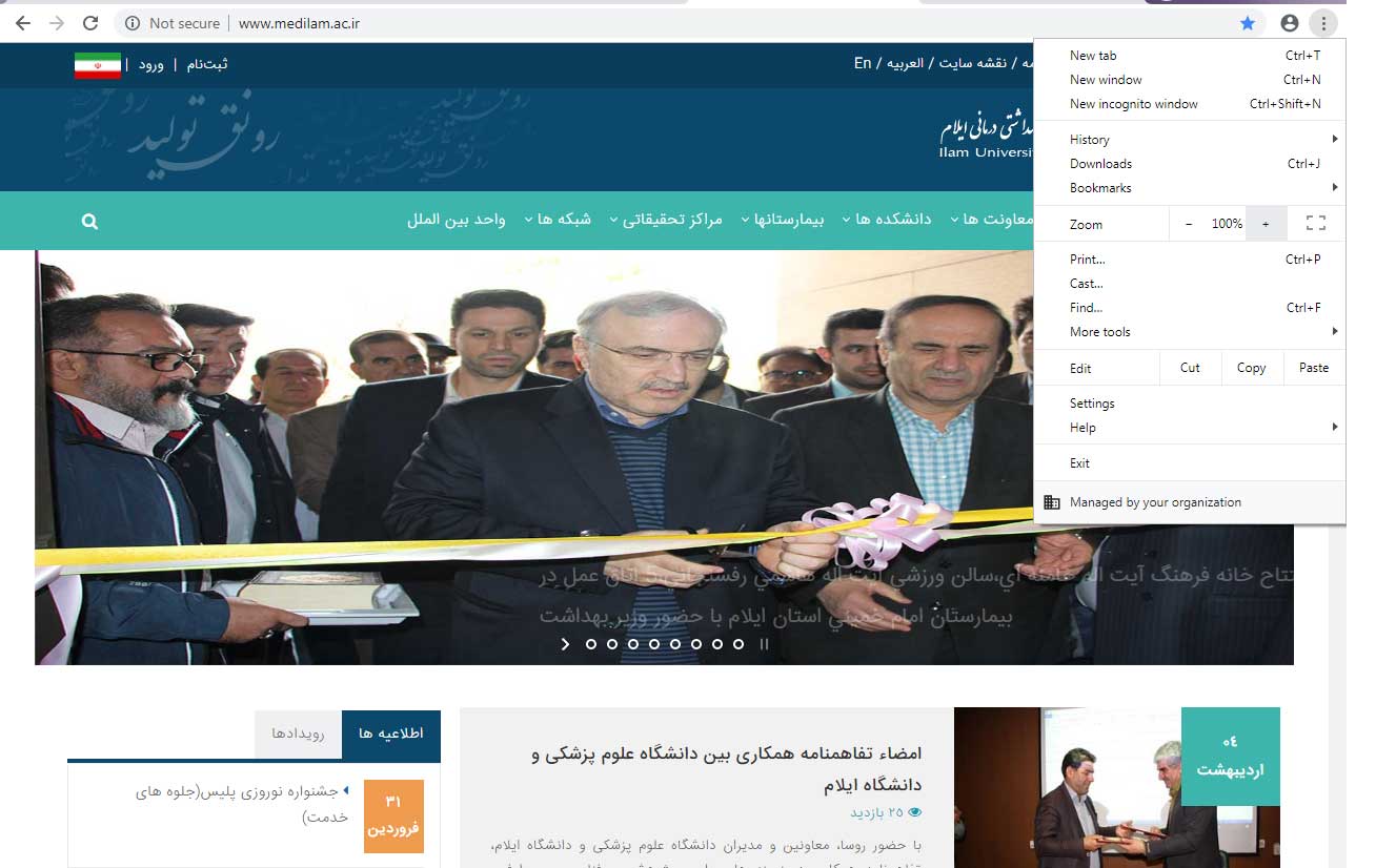 جهت نمایش بزرگتر اقلام موجود در پرتال از منو controlگزینه Zoom را انتخاب نموده و بزرگنمایی مد نظر را انتخاب نمایید.