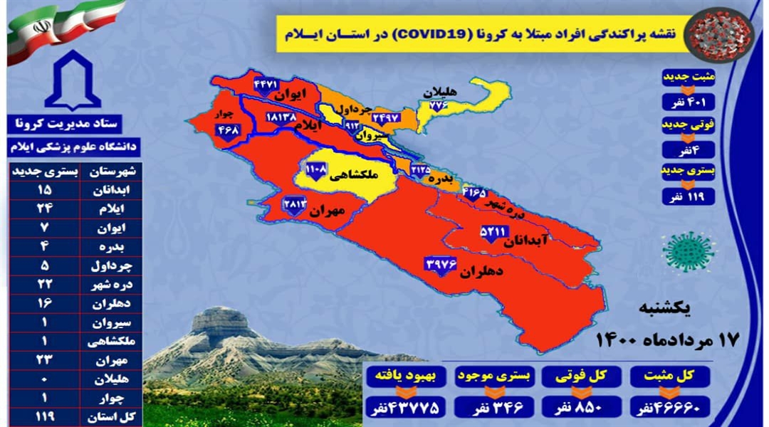 🔸 رییس دانشگاه علوم پزشکی ایلام از افزایش شمار مبتلایان به کرونا در استان به تعداد ۴۶۶۶۰ نفر خبر داد.