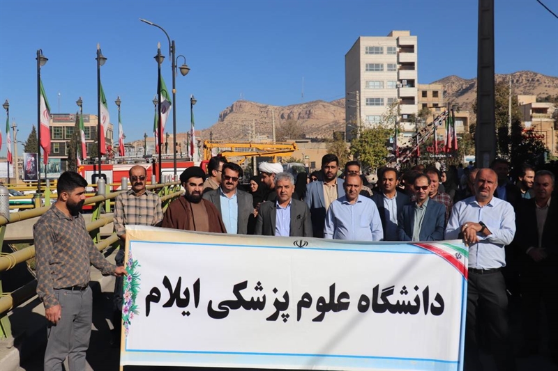 به گزارش روابط عمومی دانشگاه علوم پزشکی ایلام، رئیس دانشگاه، مسئولان، اساتید، کارکنان و دانشجویان دانشگاه، صبح امروز در کنار جمع کثیری از اقشار مختلف مردم ولایتمدار استان ایلام در راهپیمایی روز ملی مبارزه با استکبار جهانی (۱۳ آبان) شرکت کردند و با سر دادن شعارهایی، بار دیگر عظمت و یکپارچگی مردم ایران اسلامی را به نمایش گذاشتند.